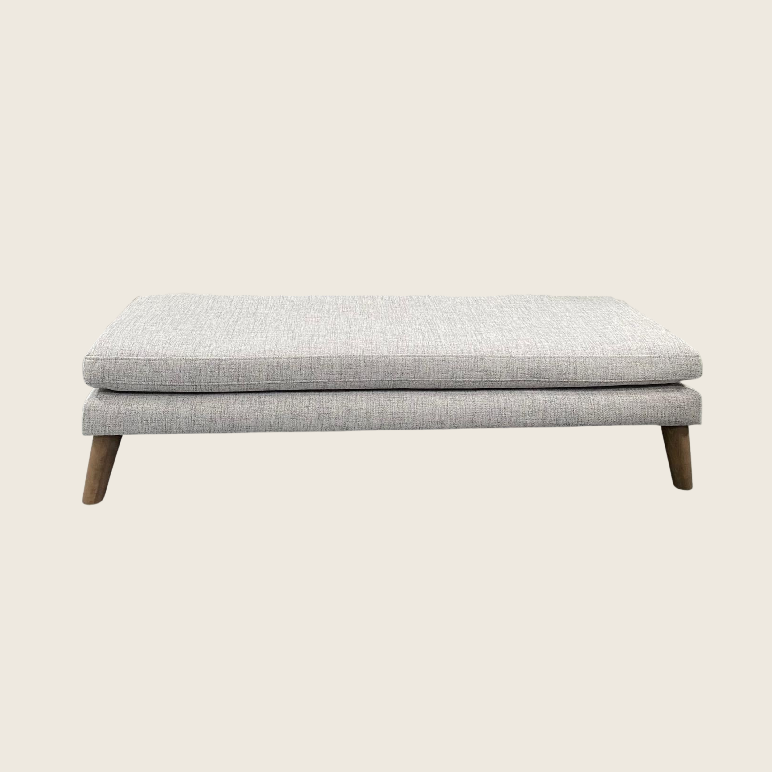 The Alton footstool focuses on simplicity of form, combining clean lines with soft upholstery to create a versatile and quietly elegant addition to any space. Its low profile and tapered legs give it a lighter visual presence, making it ideal for modern living environments.